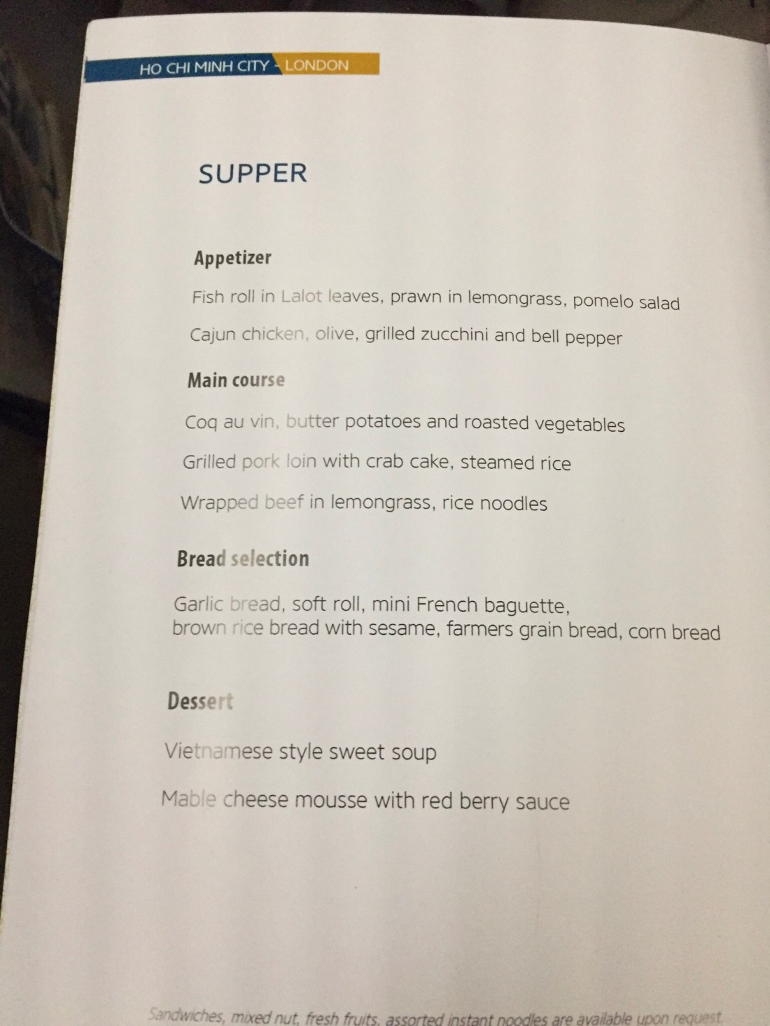 Food is OK for airline food, particularly if you eat the Vietnamese options and joy of joys they have some specialist cocktails.