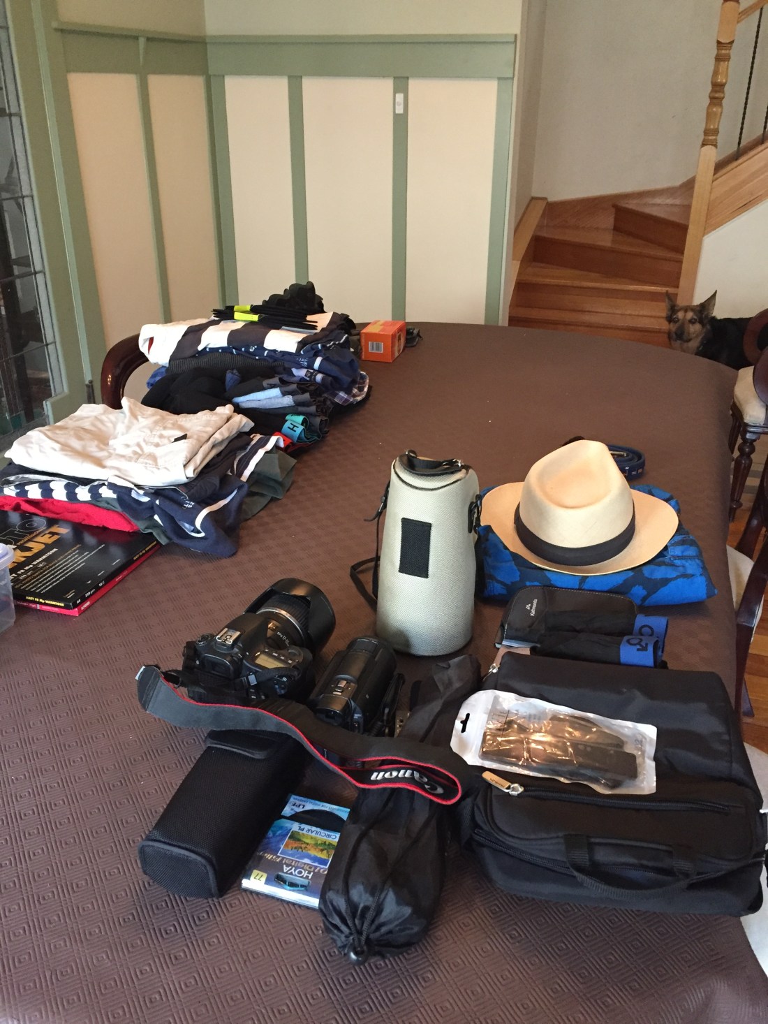 Jennifer did organise almost all the details of this holiday but when it comes to packing the pick and shove method trumps the below Nick method. He started this pile at least two weeks out, commandeering the dining room table, compromising all future meals for the duration.